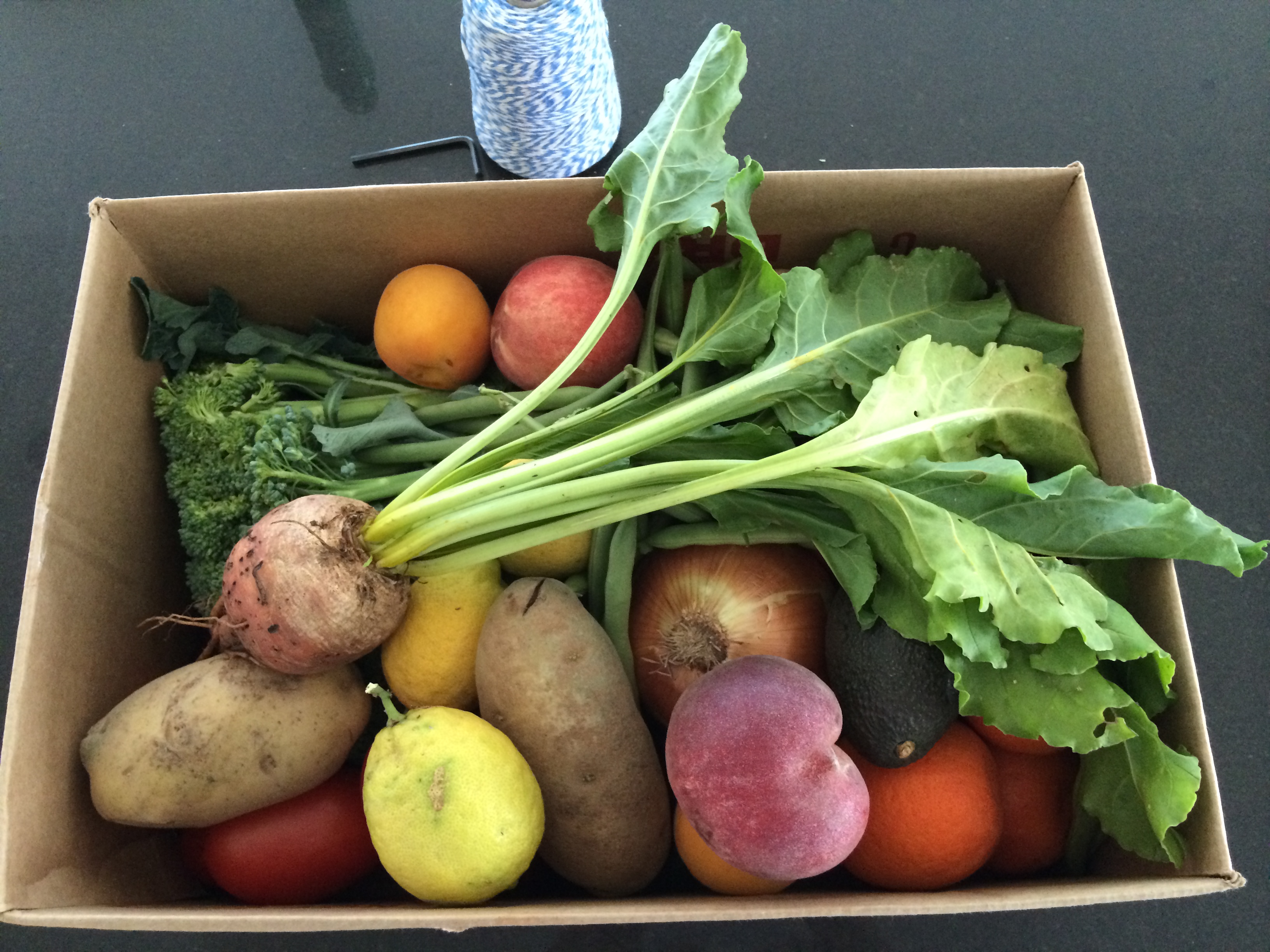 I’m trying a local CSA this week, where I picked up a box full of vegetables and fruit for $28. The food is grown by local gardeners, and is distributed from a house on 38th St. Today was the pick-up day, and I got some carrots, potatoes, onions, roma tomatoes, squash, tangelos, peas, avocados, etc. I chose what I wanted, which is a pretty good deal. My box of vegetables in my high-rise elevator was the anachronism of the day.