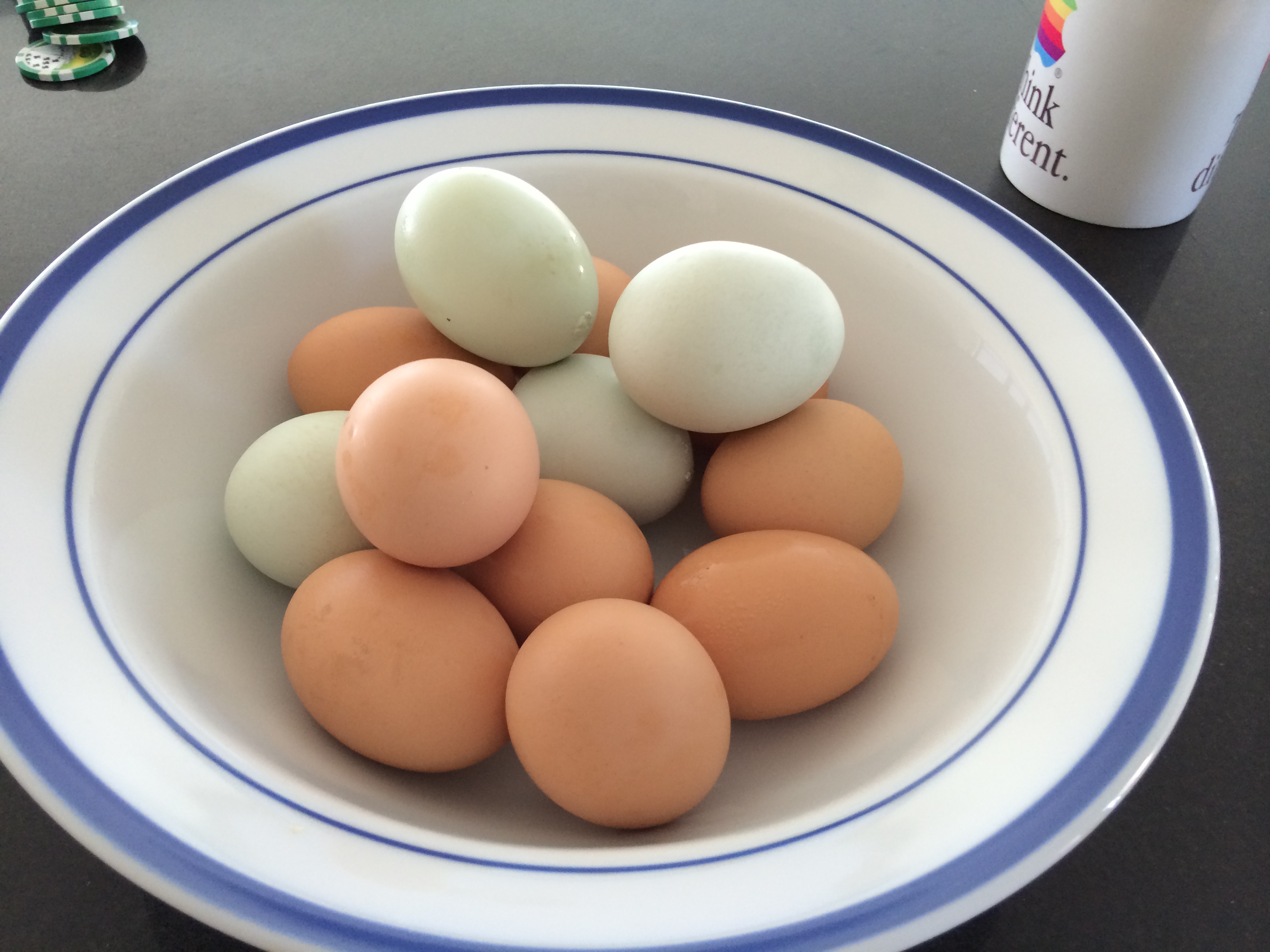 I got a nice surprise today when Hollie brought me some eggs from her backyard chickens. She gave them to me after the spin class she taught this morning, and I cooked them up for breakfast. I scrambled them with a little half-and-half and butter. Add some fried up potatoes, mushrooms, and onions, and it’s my favorite breakfast after a 1000 calorie spin burn. I’m still completely fascinated by one-degree-of-separation food.