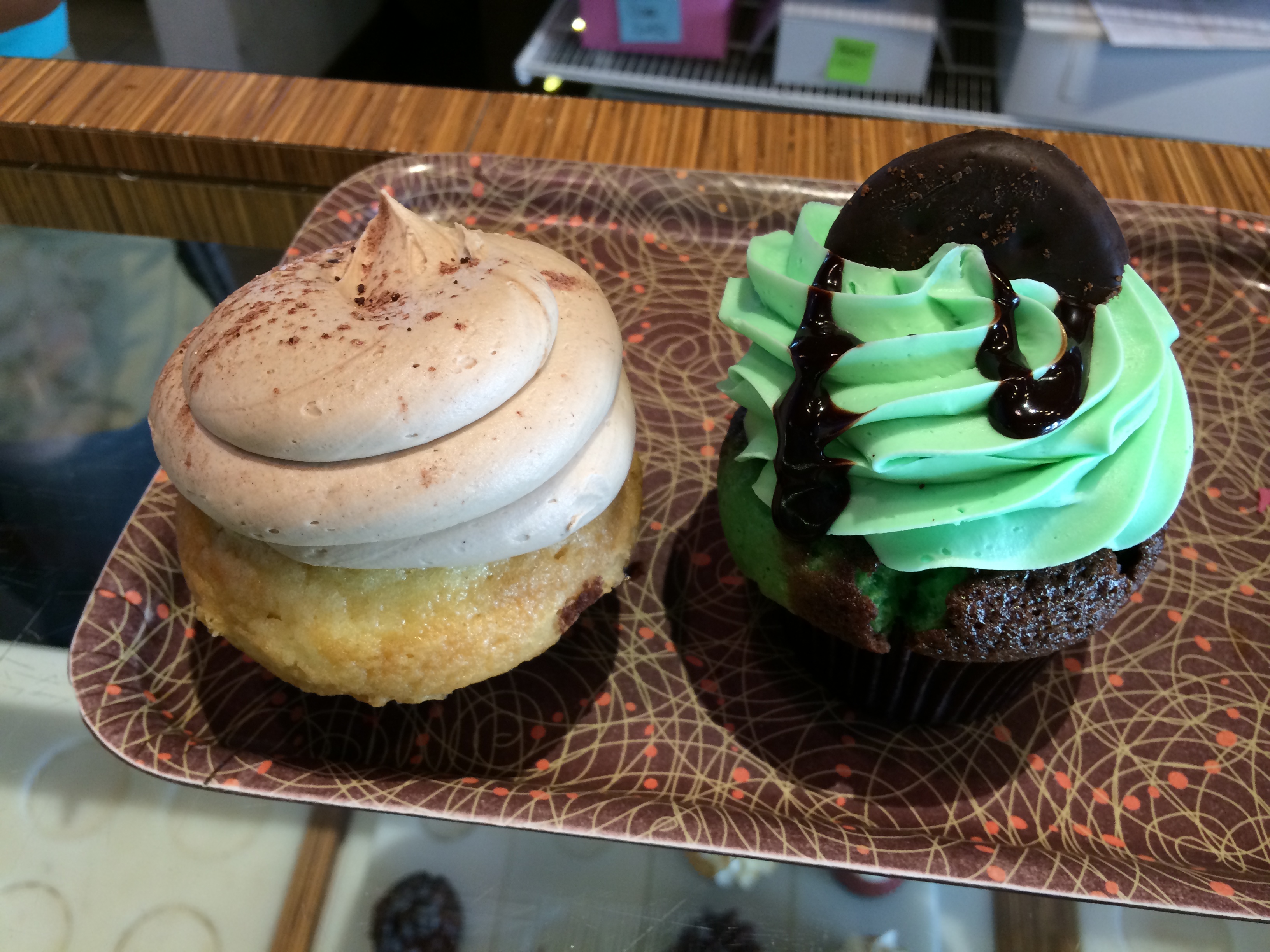 IMG_1526I felt like some sugar after my veggie burrito lunch, so I stopped by Heavenly Cupcake @ 518 6th Ave to try some high-end treats. I bought a tiramisu and Thin Mint cupcake, which probably total to about 1500 calories. I tried some of the frosting, but threw away most of it, and focused on the cake part.